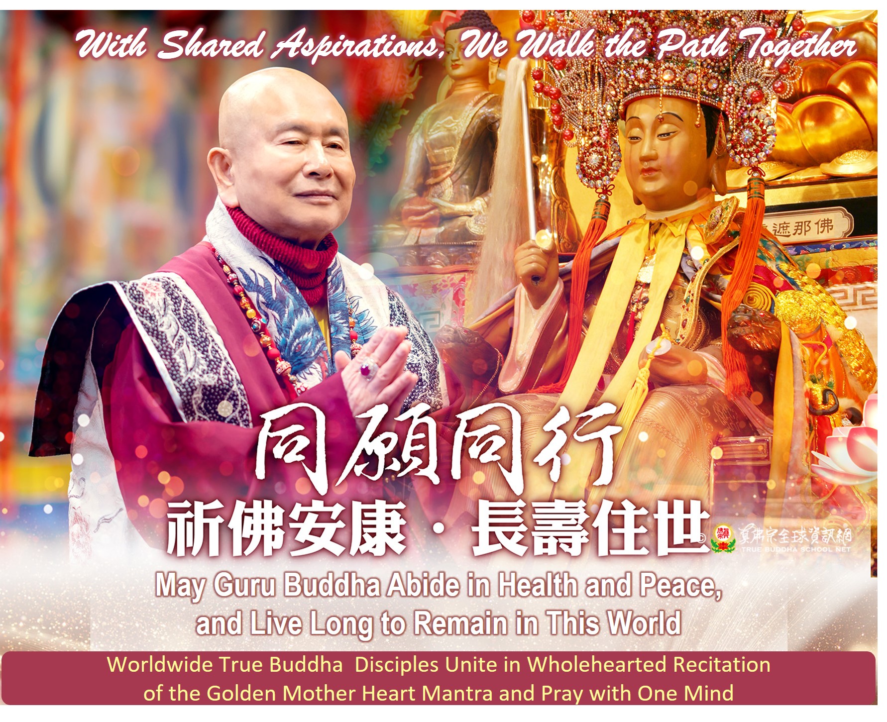 The True Buddha Foundation, in coordination with global cultivation venues, will launch five worldwide live-streamed sessions on Lunar New Year’s Day (Feb 17), leading disciples in reciting the Golden Mother Heart Mantra, praying for Guru Buddha’s health and long life.